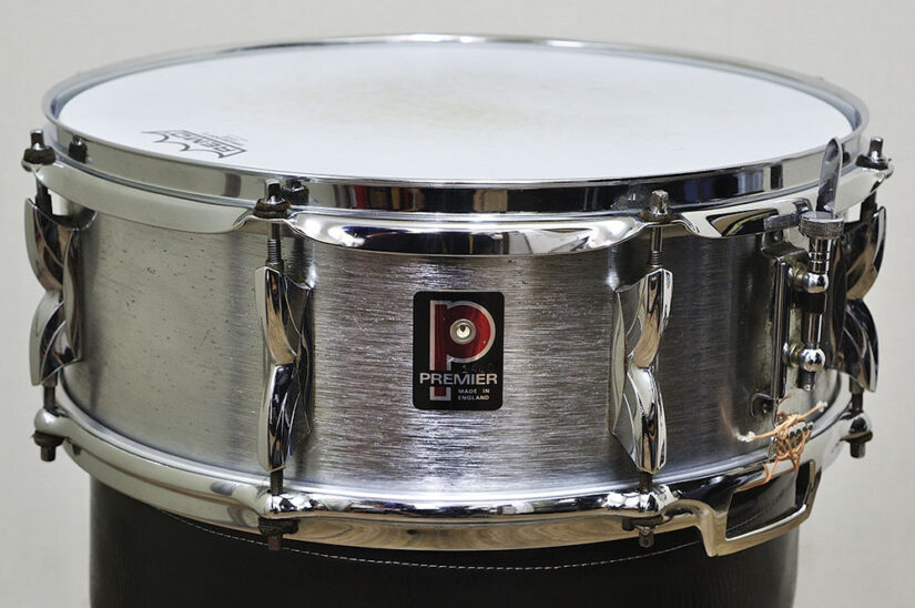 1970年代製 “Premier 1410″。落ち着いた質感のアルミ製ヴィンテージスネア。